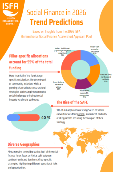 applications for the upcoming ISFA cohort, a few clear patterns are emerging. They do not point to a single dominant model, but rather to a sector actively testing its boundaries. Heading into 2026, these are the social finance trends we are watching most closely.