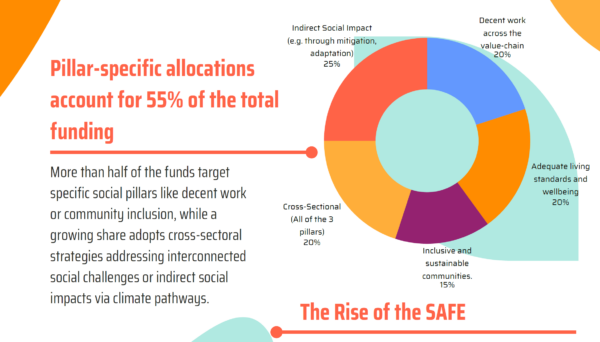 More than half of applicants focus explicitly on one of the three social pillars: decent work across value chains, adequate living standards and wellbeing, or inclusive and sustainable communities. Rather than disappearing, these focused strategies remain central to the social finance ecosystem.