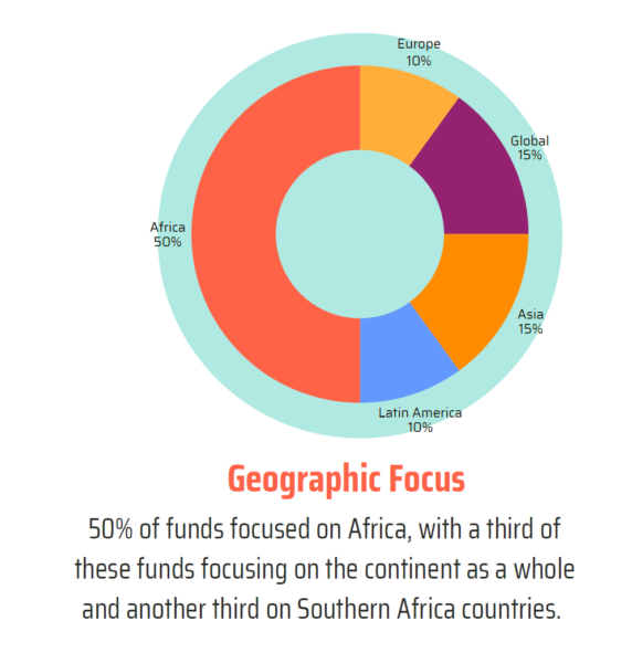 Half of ISFA applicants focus on Africa, confirming the continent’s continued centrality to social investment strategies. What is striking is not only the scale, but the internal differentiation: a meaningful share of Africa focused funds are continent wide, while an equally large group concentrates specifically on Southern Africa.