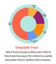 Half of ISFA applicants focus on Africa, confirming the continent’s continued centrality to social investment strategies. What is striking is not only the scale, but the internal differentiation: a meaningful share of Africa focused funds are continent wide, while an equally large group concentrates specifically on Southern Africa.
