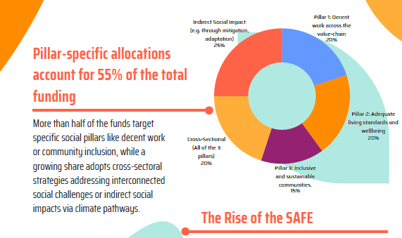 More than half of applicants focus explicitly on one of the three social pillars: decent work across value chains, adequate living standards and wellbeing, or inclusive and sustainable communities. Rather than disappearing, these focused strategies remain central to the social finance ecosystem.